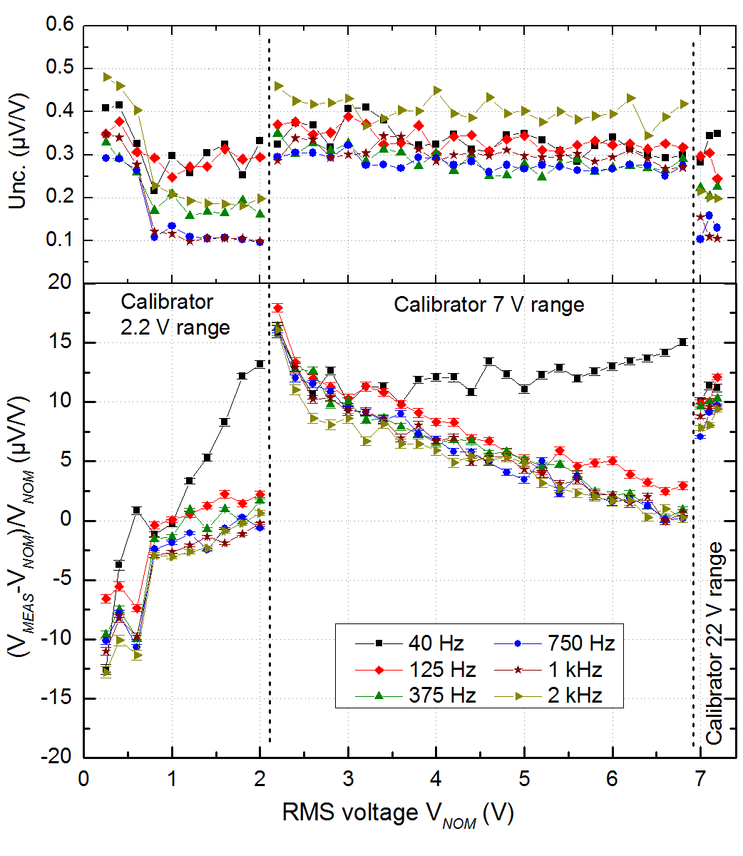 ΔV/V = 2×10-8 - Typical calibration accuracy of calibrators, e.g. Fluke 5720A (limited by the noise of the calibrator)